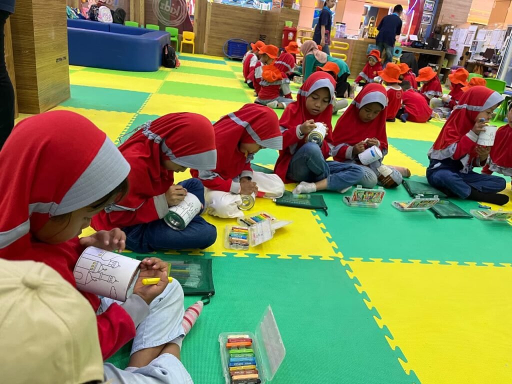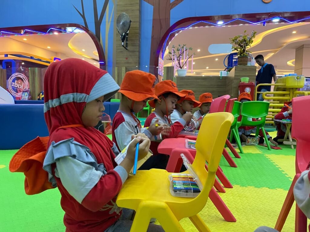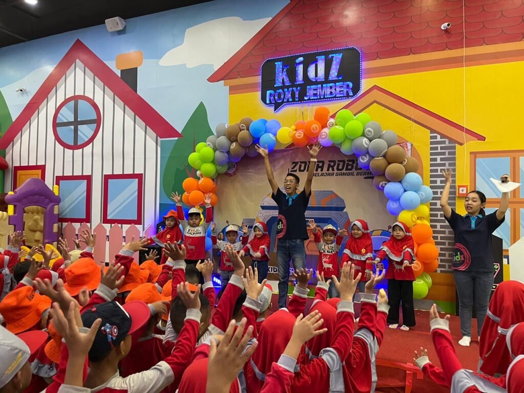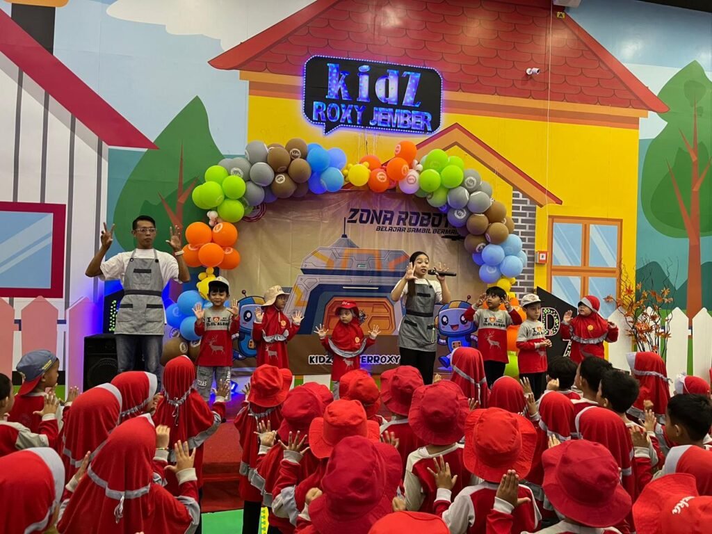 Setelah seluruh peserta lengkap dan waktu menunjukkan pukul 09.45 WIB, anak-anak dengan tertib berbaris menuju Kidz Creative Playground Roxy. Dalam suasana ceria dan penuh semangat, anak-anak berjalan bersama-sama sambil tetap berada dalam pengawasan guru.