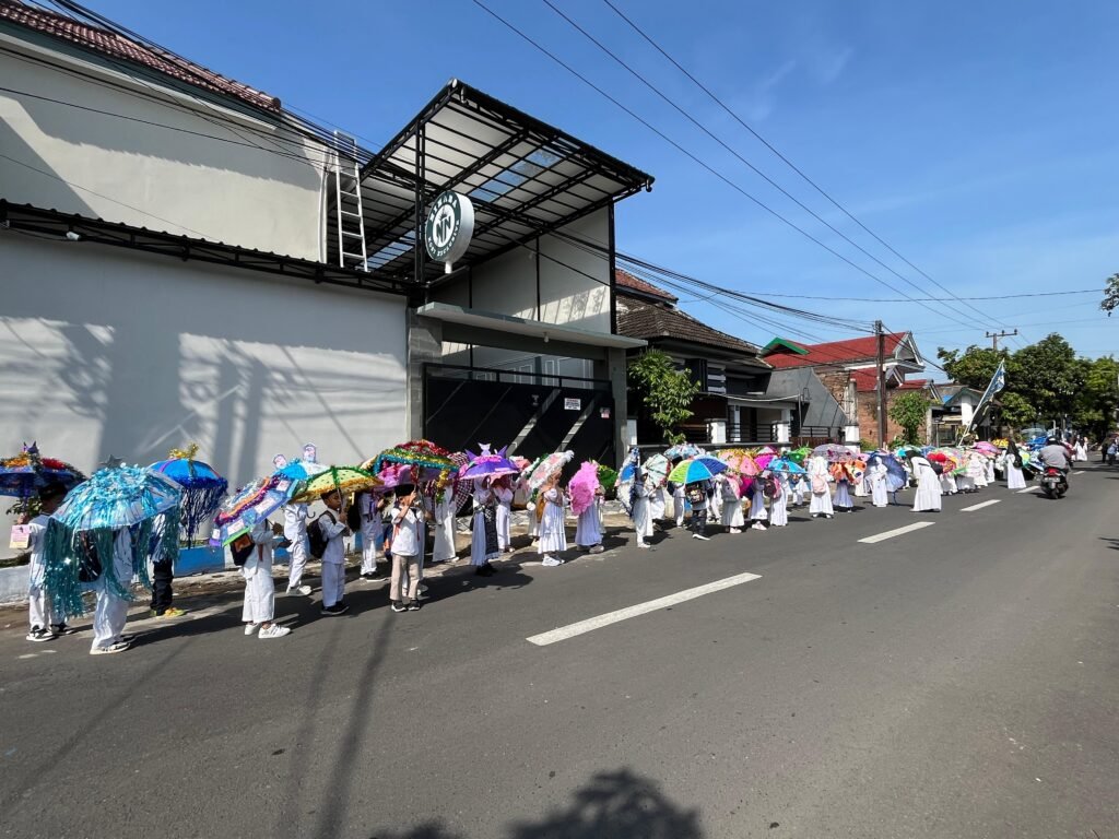 Sekitar pukul 07.30 pagi, parade dimulai. Anak-anak berjalan rapi sambil membawa payung hias mereka, menyusuri rute dari BMP menuju Mangli Residen. Setiap kelas berjalan dalam formasi yang teratur, memperlihatkan disiplin, kekompakan, dan koordinasi yang terarah.